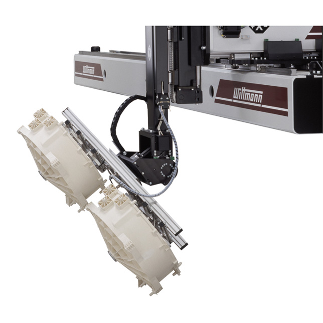 可将模制工件从模具的移动部分或固定部分取出,能够自由地将工件递给下游设备。